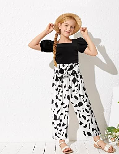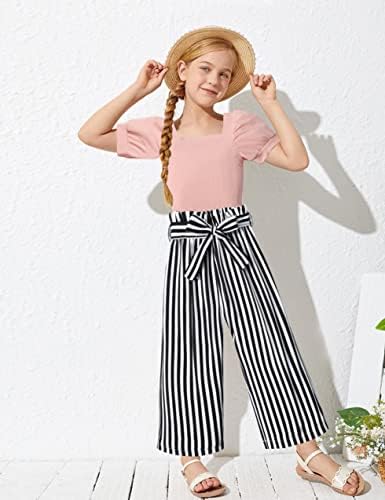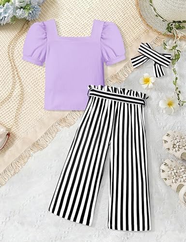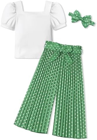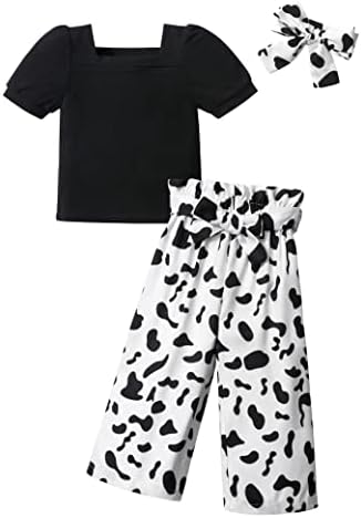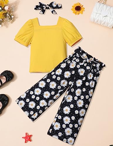 DONWEN Toddler Kids Girl Clothes Square Neck Shirt Top + Stylish Pants + Headband 3pcs Spring Summer Girl Outfits Set