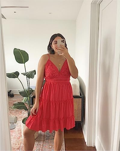 ECOWISH Summer Dresses for Women Lace V Neck Sexy Tie Back Dress
