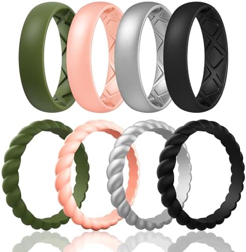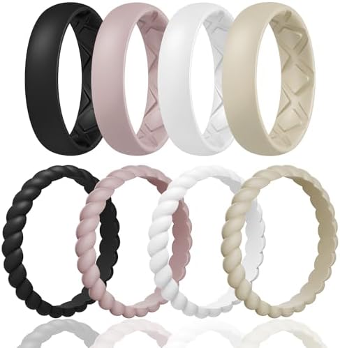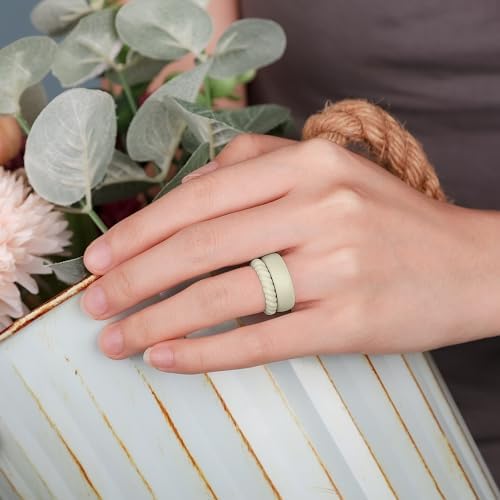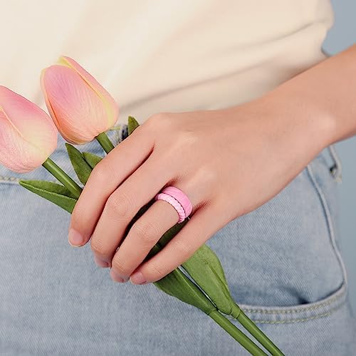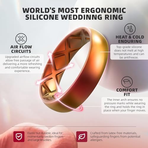 Egnaro Silicone Wedding Bands Women, Inner Arc Ergonomic Breathable Design Silicone Rubber Wedding Bands Rubber Rings for Women