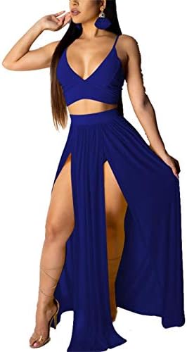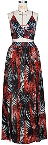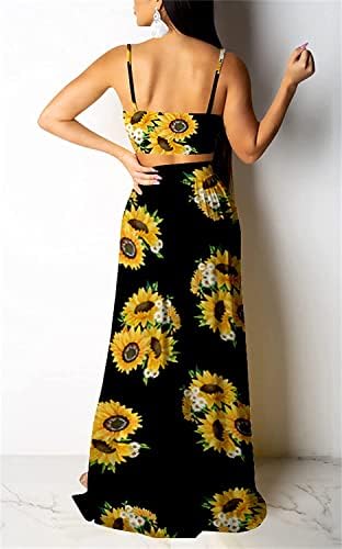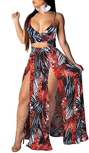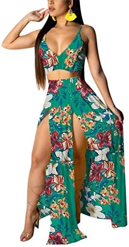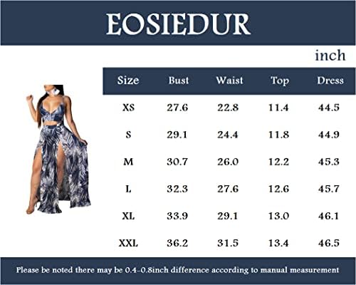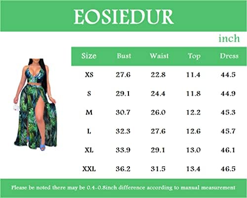 EOSIEDUR Women's Chiffon Bohemian Floral Printed 2 Piece Sets Crop Cami Top & Split Beach Party Maxi Dress