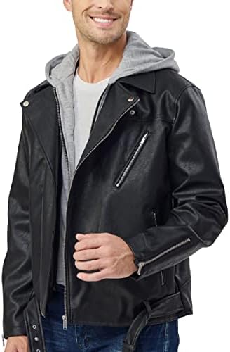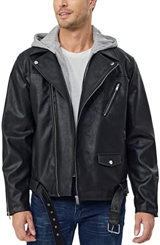 Fahsyee Leather Jackets for Men, Faux Bomber Jacket Men Motorcycle Lapel Asymmetric Zip-Up Blet Slim Fit Biker Coat
