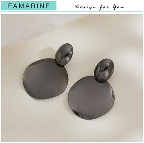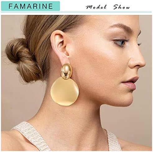 FAMARINE Big Disc Drop Earrings Gold Dangle Earrings Round Hammered Earrings Women