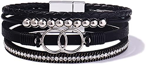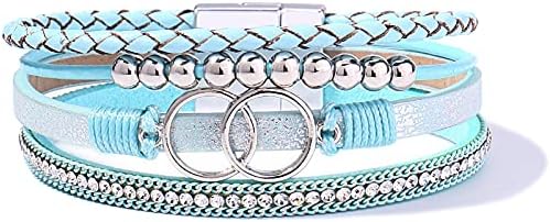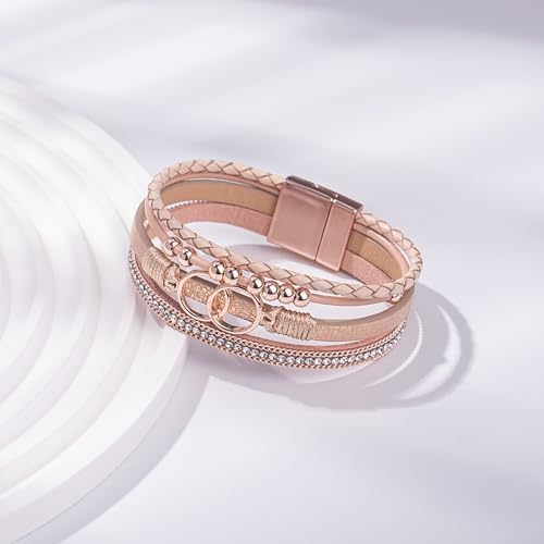 FANCY SHINY Boho Leather Wrap Bracelets Bohemian Crystal Bracelets Trendy Layered Bracelet with Magnetic Clasp Stackable Jewelry for Women