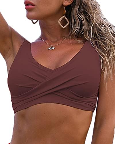 Fanuerg Women's Twist Front Bikini Top V Neck Push Up Padded Swimsuit Top Bathing Suits