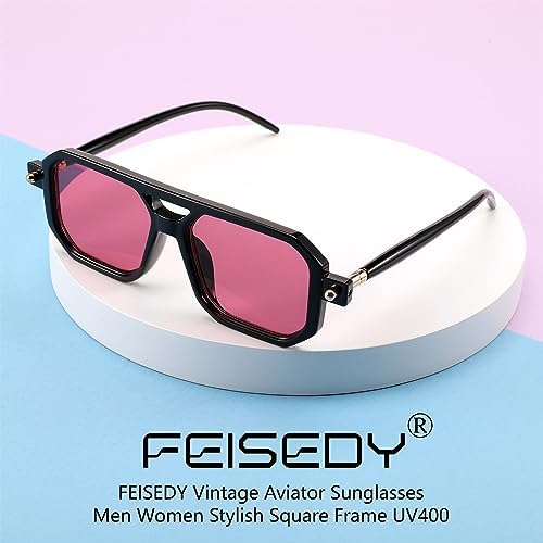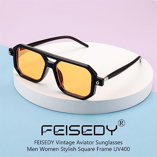 FEISEDY Vintage Square 70s Flat Aviator Sunglasses Women Men Classic Retro Stylish Frame UV400 Sunglasses B2622