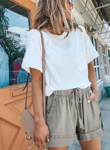 FEKOAFE Womens Shorts 2024 Comfy Summer Drawstring High Waist Cotton Shorts for Women Trendy(S-2XL)