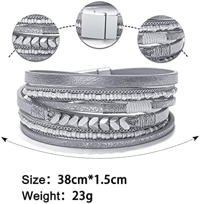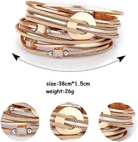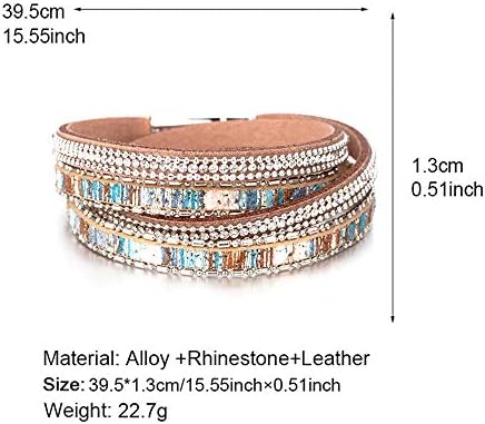Fesciory Leather Wrap Bracelets for Women, Boho Leopard Multi-Layer Crystal Beads Cuff Bracelet Jewelry