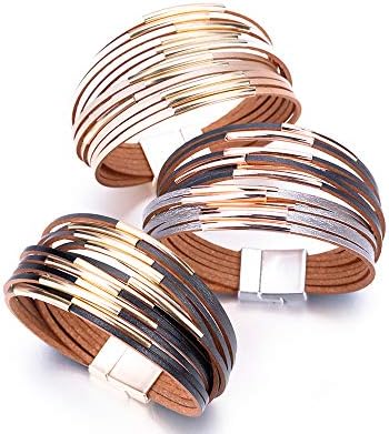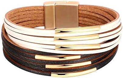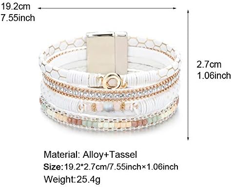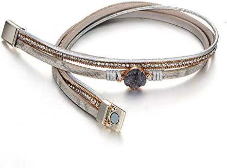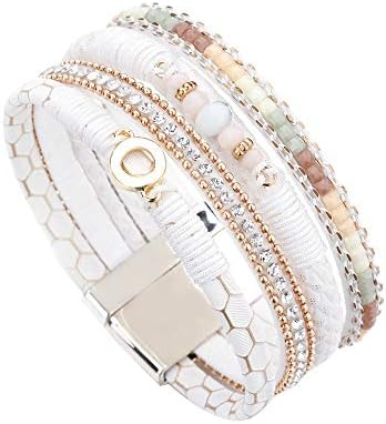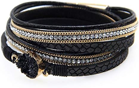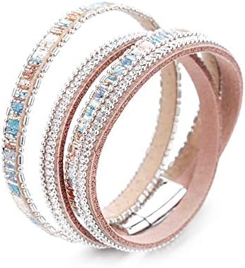 FANCY SHINY Boho Leather Wrap Bracelets Bohemian Crystal Bracelets Trendy Layered Bracelet with Magnetic Clasp Stackable Jewelry for Women