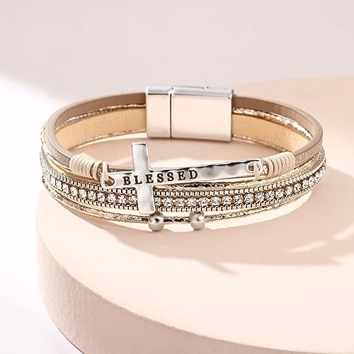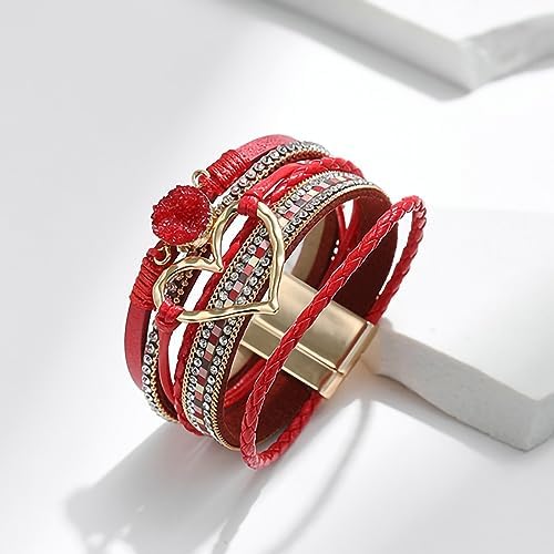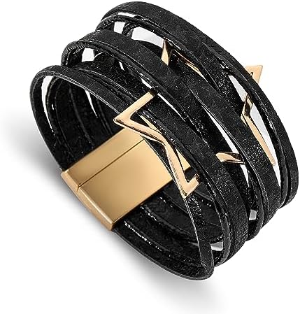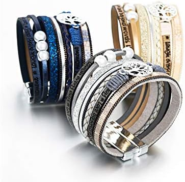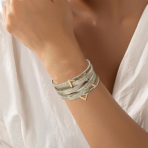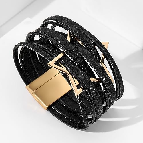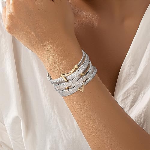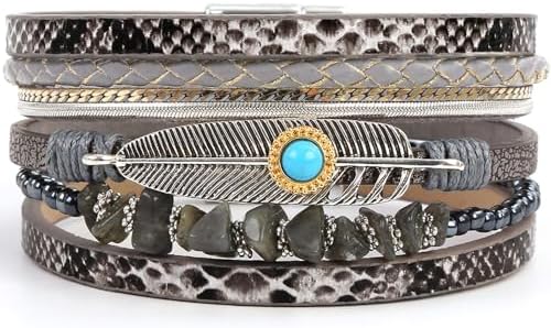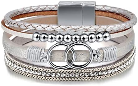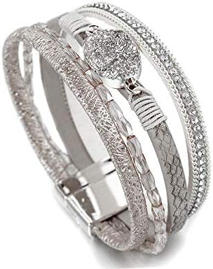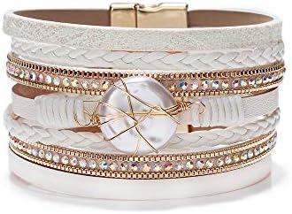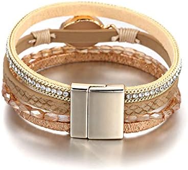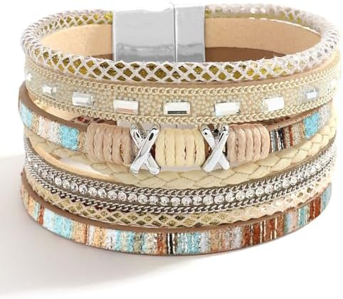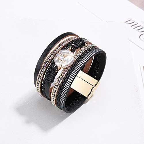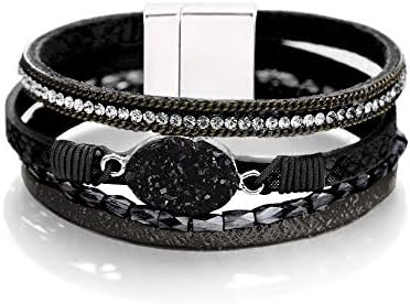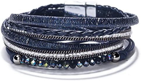FANCY SHINY Boho Leather Wrap Bracelets Bohemian Crystal Bracelets Trendy Layered Bracelet with Magnetic Clasp Stackable Jewelry for Women