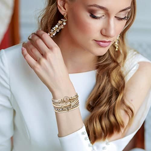 FANCY SHINY Boho Wrap Bracelets Leather Cuff Bangle Gold Beaded Bracelets for Women Stackable Infinity Bracelets Jewelry with Magnetic Clasp