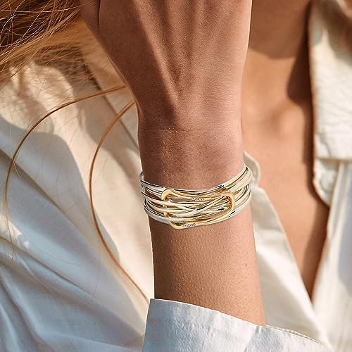 iF YOU 8 Pcs Gold Bracelets for Women - 14K Gold Plated Stackable Bracelets Set, Layered Silver Bracelets Stack Jewelry