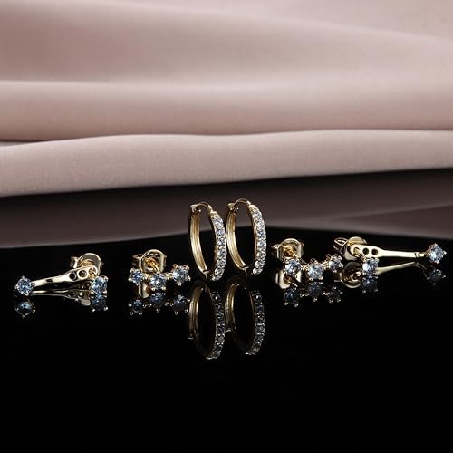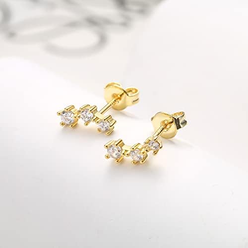 FIASASO 3 Pairs 925 Sterling Silver Hypoallergenic Earrings Set for Multiple Piercing Dainty 14K Gold Plated Stud Huggie Small Hoop Earrings for Women Trendy Cute Earring Stacks for Sensitive Ears