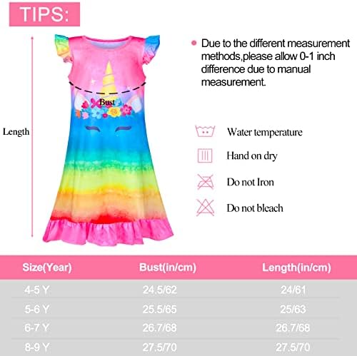 Fiodrimy Girls Nightgowns Unicorn Sleepwear Night Sleep Dress Pajamas Little Kids Toddler Soft Nightgown