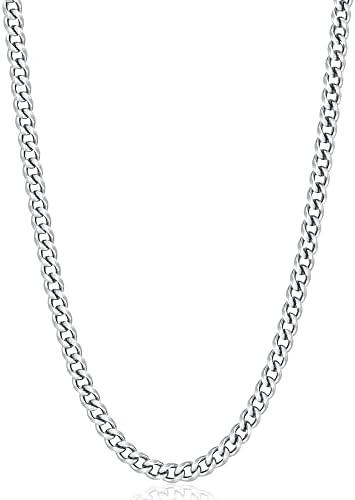 Fiusem 3.5mm Silver Tone/Black/14K Gold Plated Chains for Men, Mens Necklace Chains Stainless Steel Cuban Link Chain Necklace for Men, Mens Chain 16, 18, 20, 22, 24, 26, 28 Inch