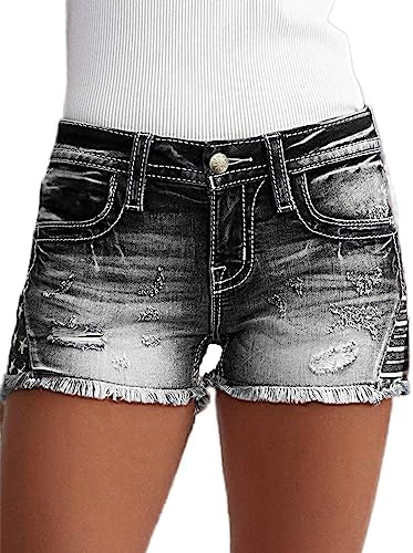 Flamingals Ripped Denim Shorts for Women High Waist Distressed Raw Hem Skinny Jean Shorts