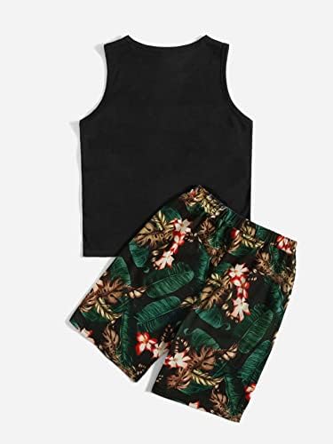 Floerns Boys Boho Sleeveless Tank Top Tropical Print Shorts Set 2 Piece Outfit