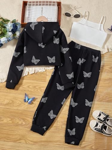 Floerns Girls Graphic Print Clothes Cami Top Sweatpants with Jacket 3 Piece Outfit