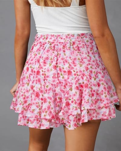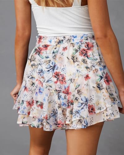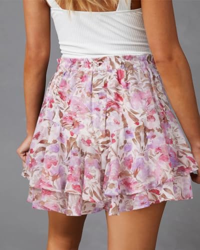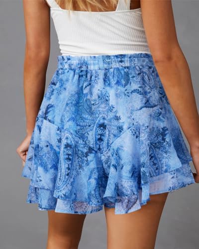Flowy Shorts for Women Casual Boho Floral Skorts Ruffle Mini Skirts Running Tennis Butterfly Shorts Chiffon Shorts