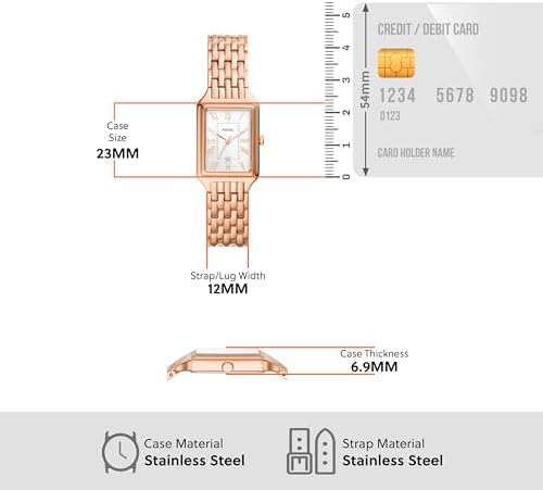 Fossil Raquel Women's Watch with Rectangular Case and Stainless Steel Bracelet or Leather Band