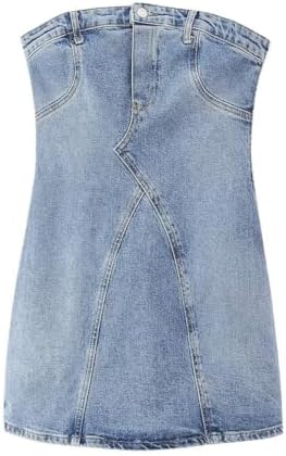 Summer Y2K Sexy Strapless Denim Mini Dress for Women, Teen Girls
