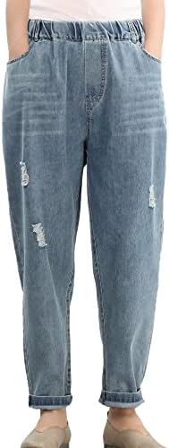 Women's Ripped Destroyed Skinny Jeans & Jeggings Pull-On Elastic Waist Stretch Denim Pants Regular-Plus Size