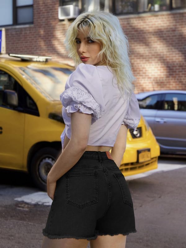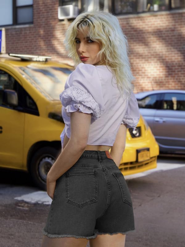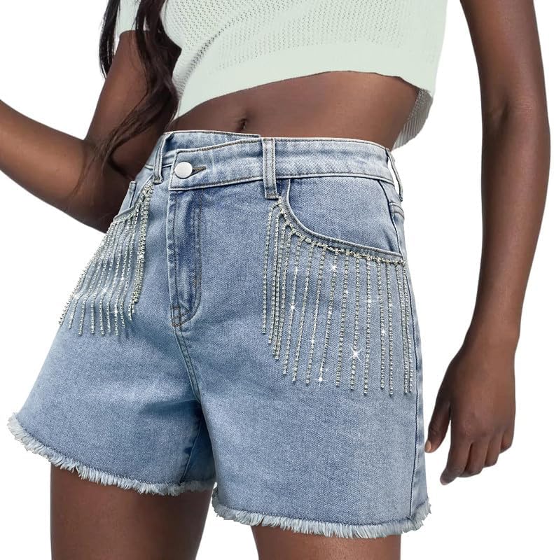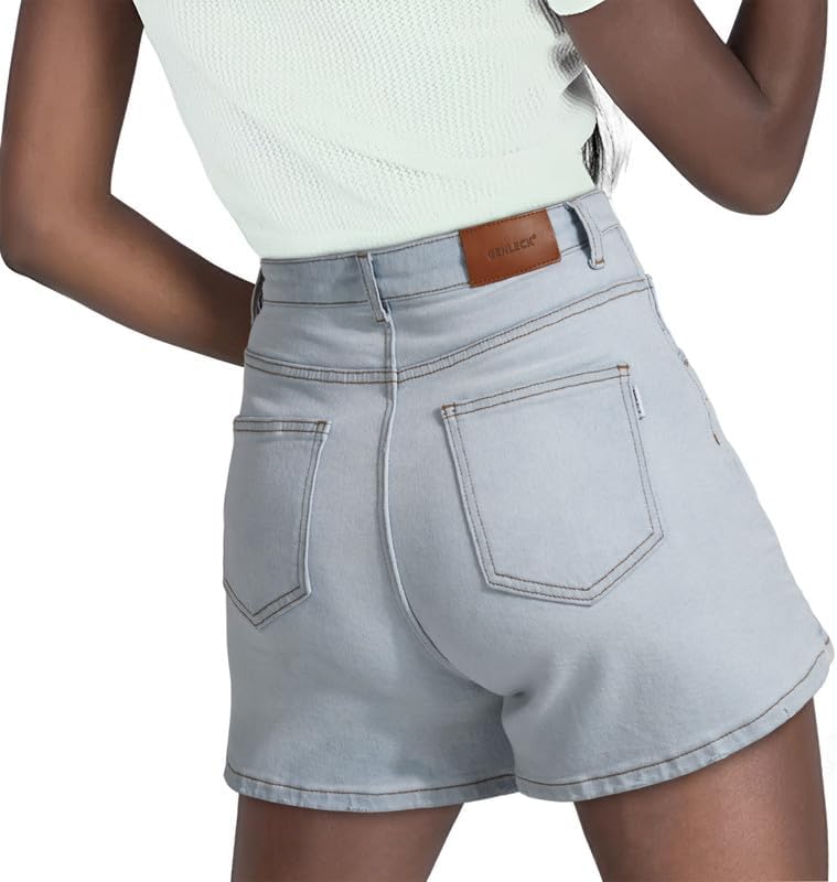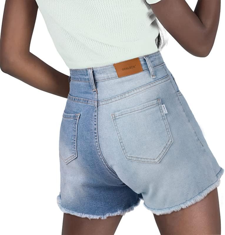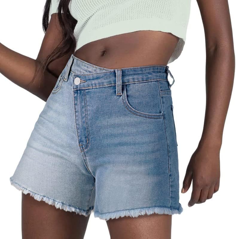Genleck Womens Crossover Jean Shorts - Stretch High Waisted Trendy Denim Shorts Curvy Casual Summer Clothes