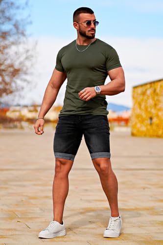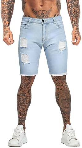 GINGTTO Men's Denim Shorts Slim Fit Stretch Ripped Short Jeans