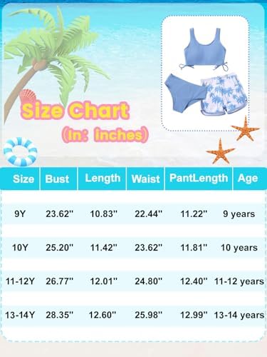 Girl's 3 Piece Bikini Bathing Suit Printed Sport Swimsuits with Shorts Cove Up Sets Teen Girl's Swimwear