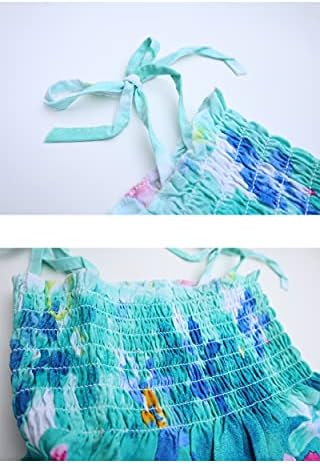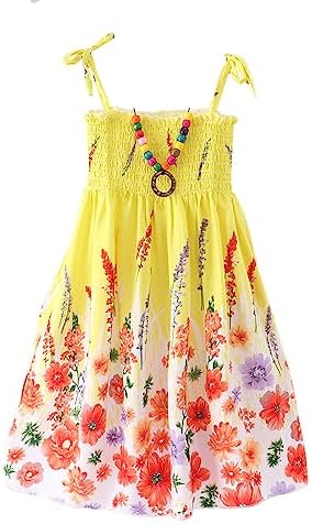 Girls Bohemian Dresses Floral Sleeveless Rainbow Beach Sundress with Necklace 2-12T
