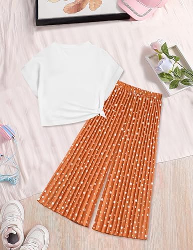 Girls Clothes Crop Tops Pleated Wide Leg Pants 2Pcs Spring Summer T-shirt Outfit