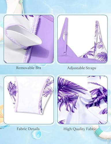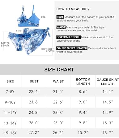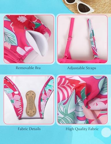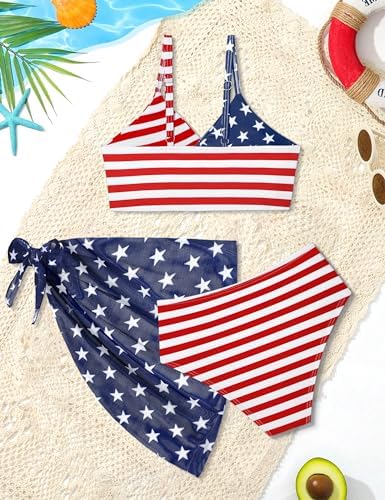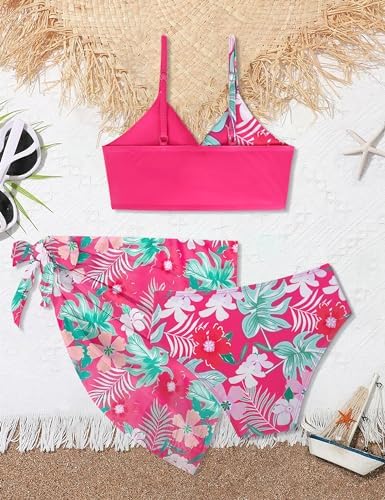 Girls Swimsuit, Bathing Suits 3 Piece Tropical Floral Twist Cross Bikini Sets Girls' Swimwear with Cover Up Skirt 7-16T
