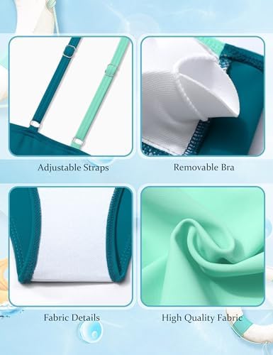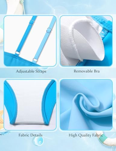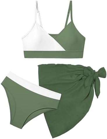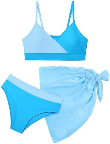 Girls Swimsuit V Neck Bikini Set Color Block with Cover Up 3Pcs Bathing Suits