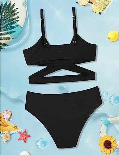 Girls Swimsuits Bikini Set,Two Piece Swimsuit Criss Cross Bathing Suit Girls' Swimwear