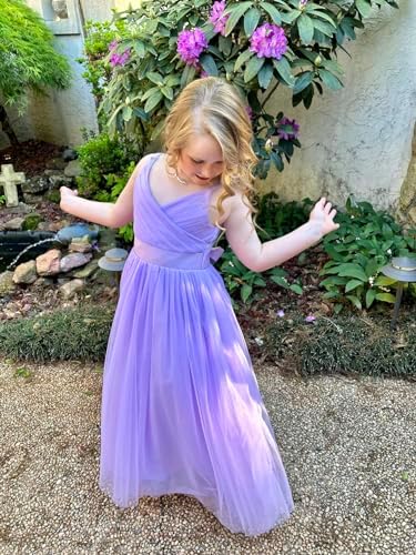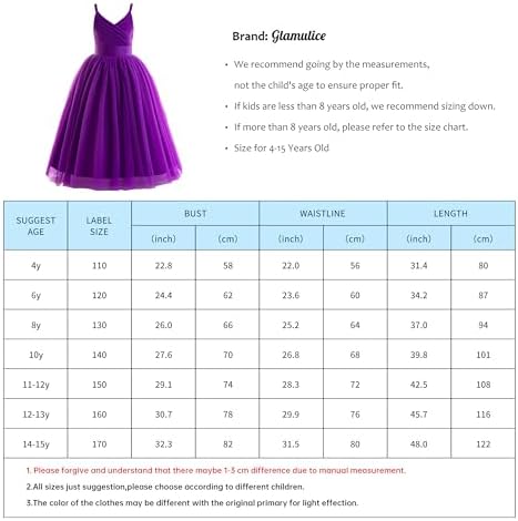 Glamulice Flower Girls Spaghetti Strap Tulle Dress Long A Line Wedding Pageant Dresses Princess Birthday Party Ball Gown