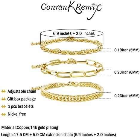 Gold Chain Bracelet For Women,14K Real Gold Link Dainty Bracelets Stake Adjustable Layered Bracelet Set Hypoallergen Gold Jewelry