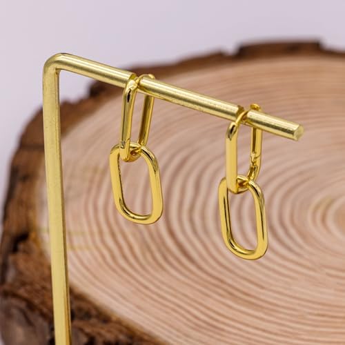 Gold Earrings for Women Trendy, Simple Dainty 14K Gold Plated Paperclip Square Chain Link Dangle Hoops Earrings Pin Stud Huggie Earrings Lightweight Hypoallergenic Minimalist Aesthetic Gold Jewelry for Christmas Gifts