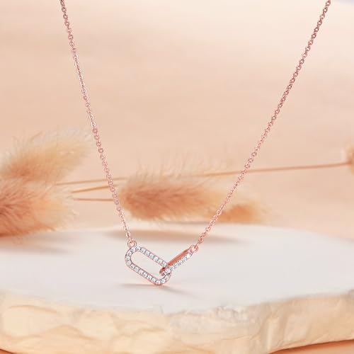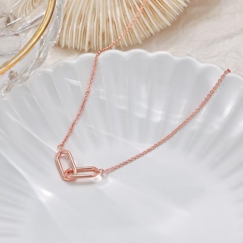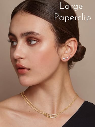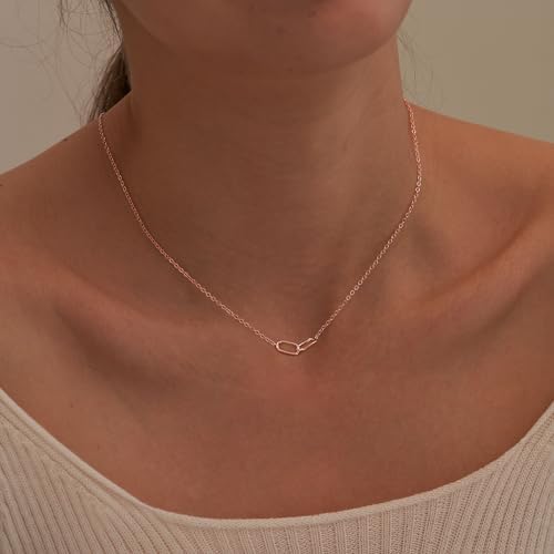 Gold Pendant Necklace for Women, Dainty Diamond Necklaces for Women Simple 14K Gold Plated Paperclip Choker Necklaces Cute Minimalist Open Oval Necklaces Gold Jewelry for Women Gifts