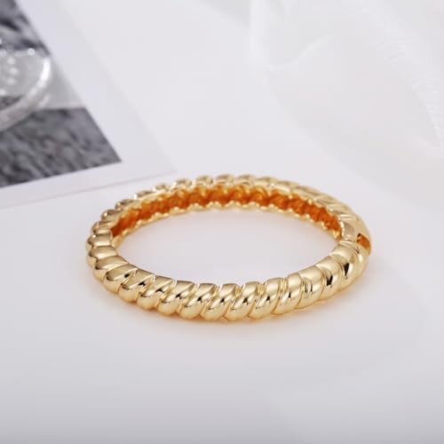 Gold Polished Chunky Twisted Hinged Waterdrop Bangle Bracelet for Women Spiraled Oval Bangle Bracelet