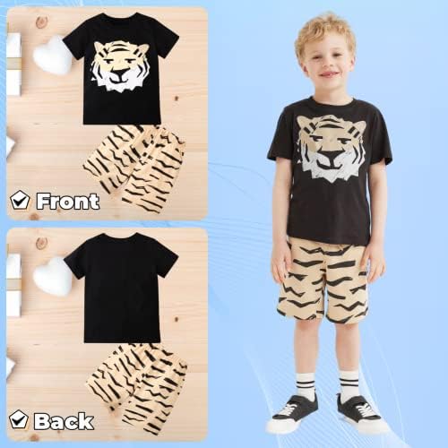 Gorboig Toddler Boy Clothes Little Boys Summer Outfits Short Sleeve Clothing Dinosaur T-Shirt & Shorts Sets 2-7T