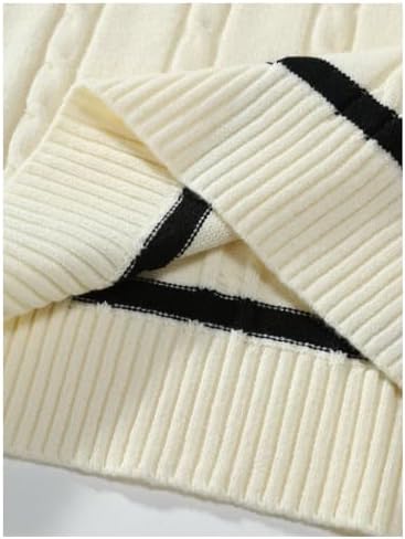 GORGLITTER Men's Striped Cable Knit Sweater Vest Sleeveless V Neck Pullover Sweater Tops