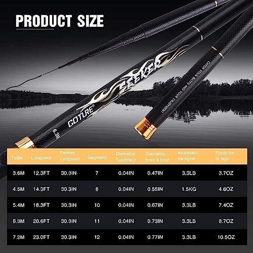 Goture//Telescopic Tenkara Fishing Rod//Ultralight Travel Fishing Rod,Portable Collapsible Bass Crappie Rod,1 Piece Carbon Fiber Inshore Stream Trout Pole 10 12 15 18 21 24 Free Tip Set(Top 3 Segment)
