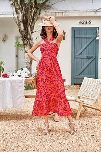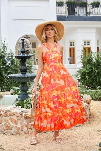 GRACE KARIN 2024 Women's Criss Cross Halterneck Sleeveless Summer Floral Print Flowy A Line Maxi Dress