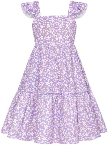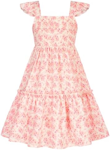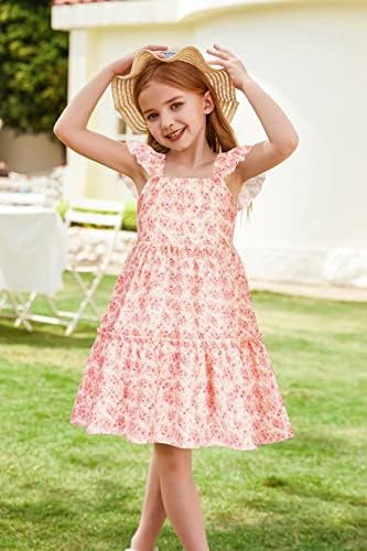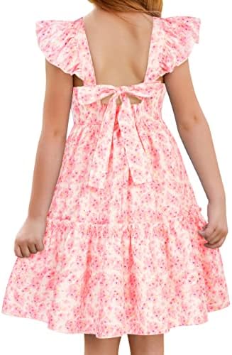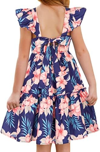 GRACE KARIN Girls Floral Dress Tie Back Flutter Sleeves Casual Summer Dress for 6-12Y