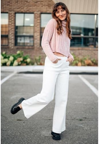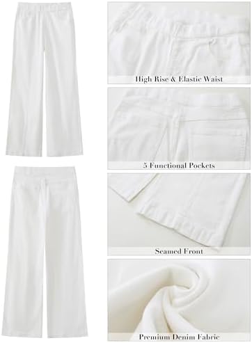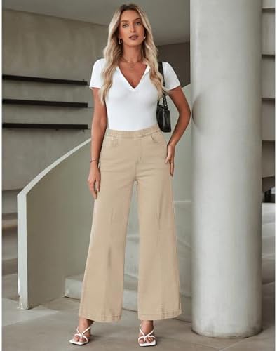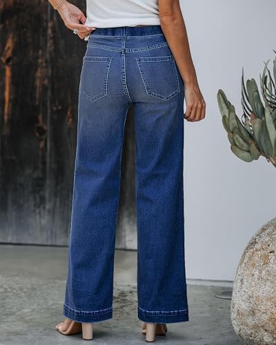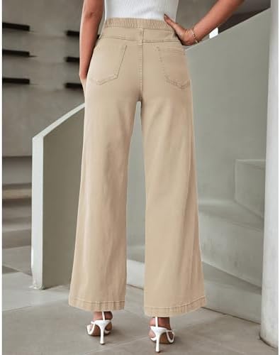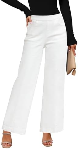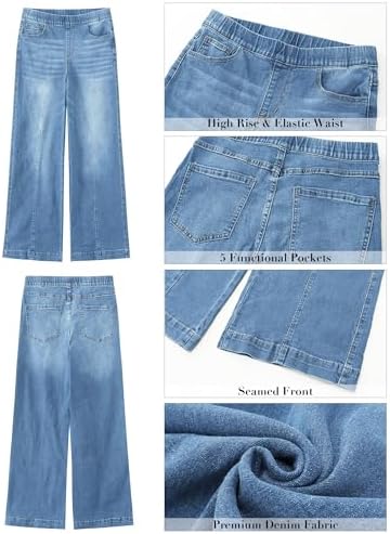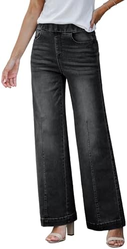 GRAPENT Pull On Womens Jeans Baggy Stretchy High Waisted Denim Wide Leg Trouser Pants Trendy Front Seam 90s Loose Jean