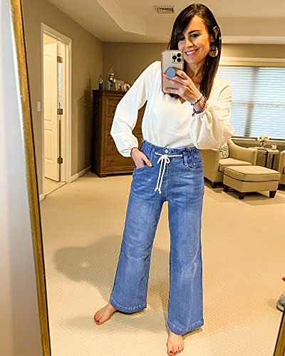 GRAPENT Wide Leg Jeans for Women Stretch High Wasited Elastic Waist Bell Bottom Baggy Y2K Pants