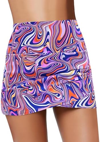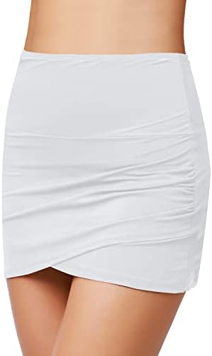 GRAPENT Women's High Waist Tulip Hem Shirring Swim Skirt Swimsuit Bikini Bottom