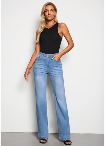 GRAPENT Womens Flare Jeans High Waisted Wide Leg Baggy Jean for Women Stretch Denim Pants