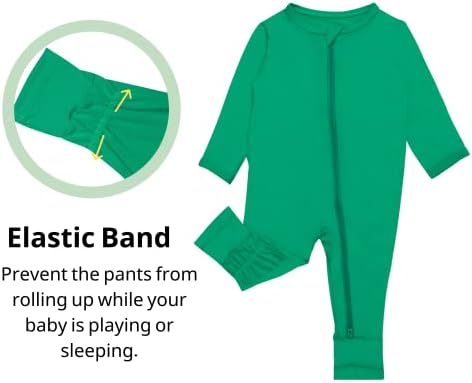 GUISBY Baby Pajamas with Mitten Cuffs - 3Pcs Girls Boys 2 Way Zipper Long Sleeve Rayon Sleepers