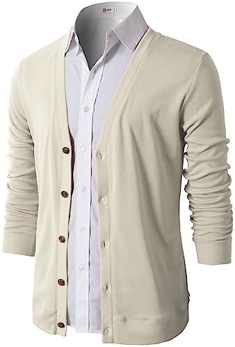 H2H Mens Casual Slim Fit Cardigans V-Neck Basic Designed Long Sleeve Button Down