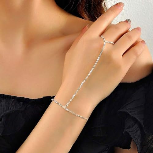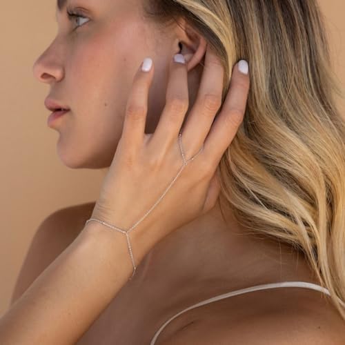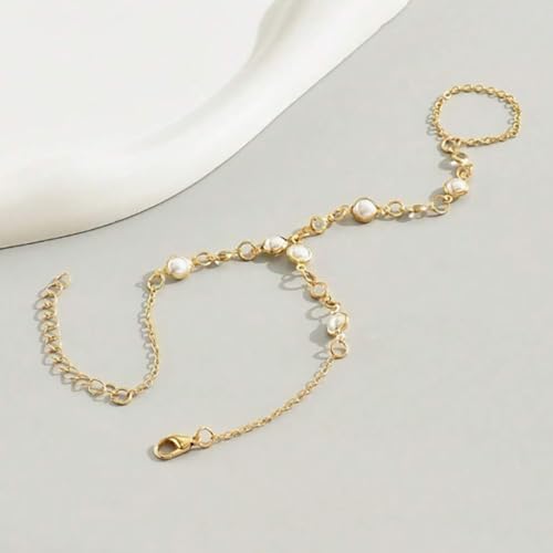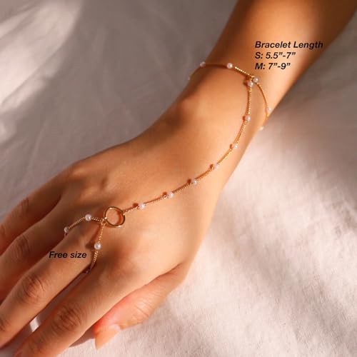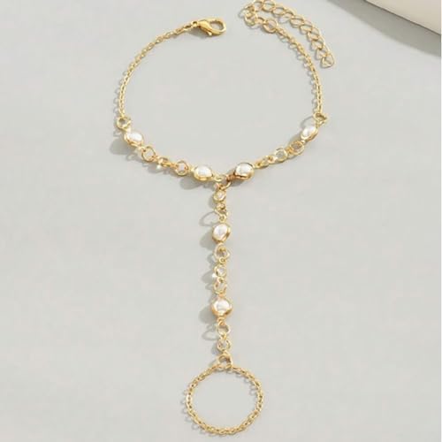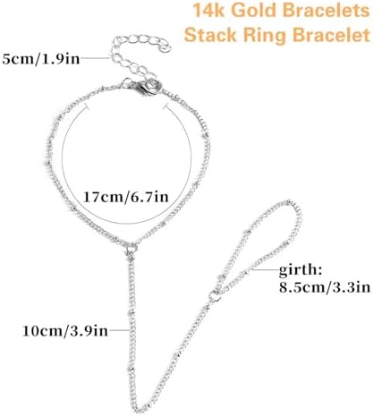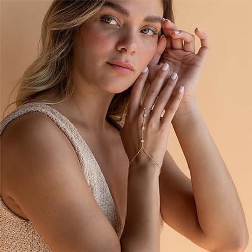 Hand Chain Bracelet Ring Bracelet Hand Chain Dainty 14k Gold Finger Ring Slave Bracelet Zircon Hand Jewelry for Women Trendy Summer Essentials Stuff Fashion Boho Beach Jewelry Gifts